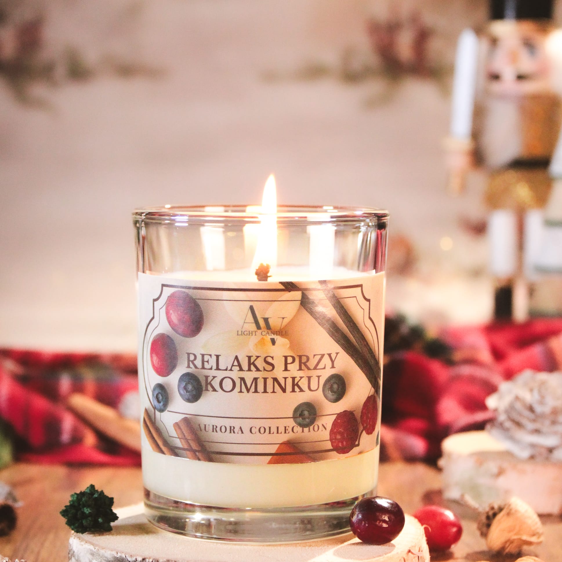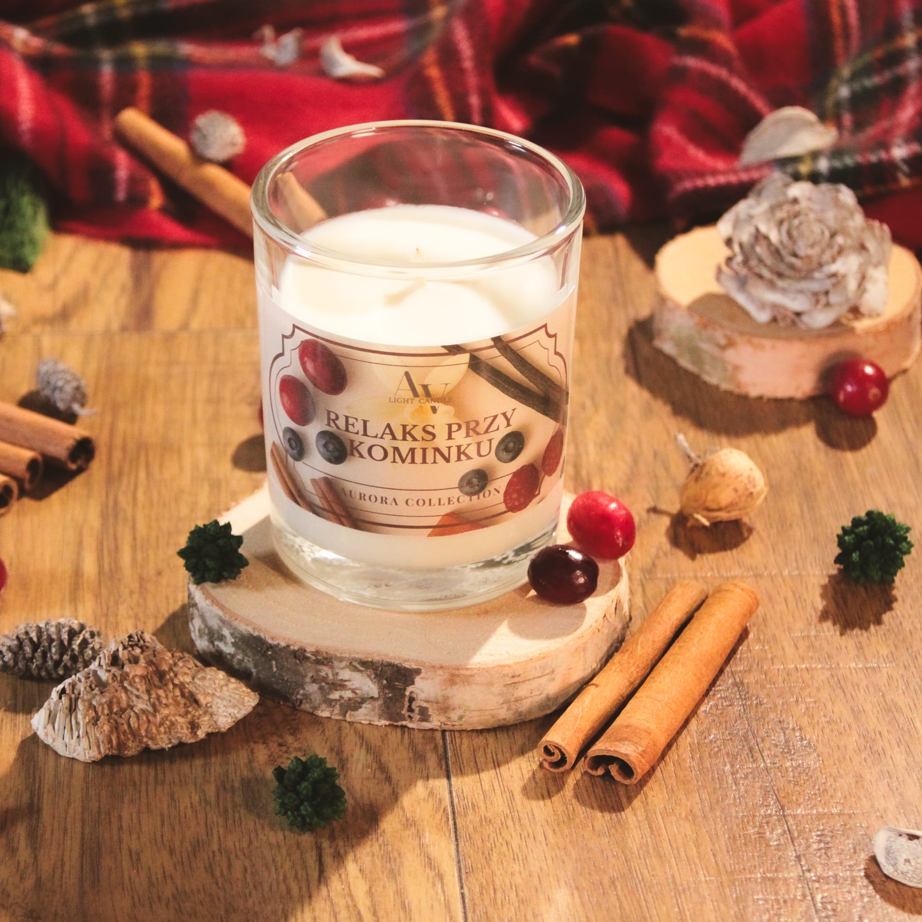Świeca sojowa Relaks przy Kominku przenosi w atmosferę ciepła, spokoju i zimowego ukojenia. To zapach, który otula zmysły aromatem cynamonu, czerwonych owoców i nutą nostalgii — jak wieczór spędzony przy trzaskającym kominku. Kompozycja zapachowa tej świecy to intensywny cynamon połączony z soczystymi czerwonymi owocami. W sercu zapachu pojawia się jaśmin, paczula, róża i tuberoza – głębokie i zmysłowe nuty, które wprowadzają równowagę między ciepłem a elegancją. Bazę tworzą wanilia, dziegieć brzozowy, piżmo i delikatny karmel, nadając kompozycji trwałość i otulający charakter. To świeca sojowa, która nie tylko wypełnia wnętrze zapachem, ale także buduje nastrój. Idealna na wieczory, gdy potrzebujesz odpoczynku i ukojenia. Ręcznie wykonana w Polsce z naturalnych składników.