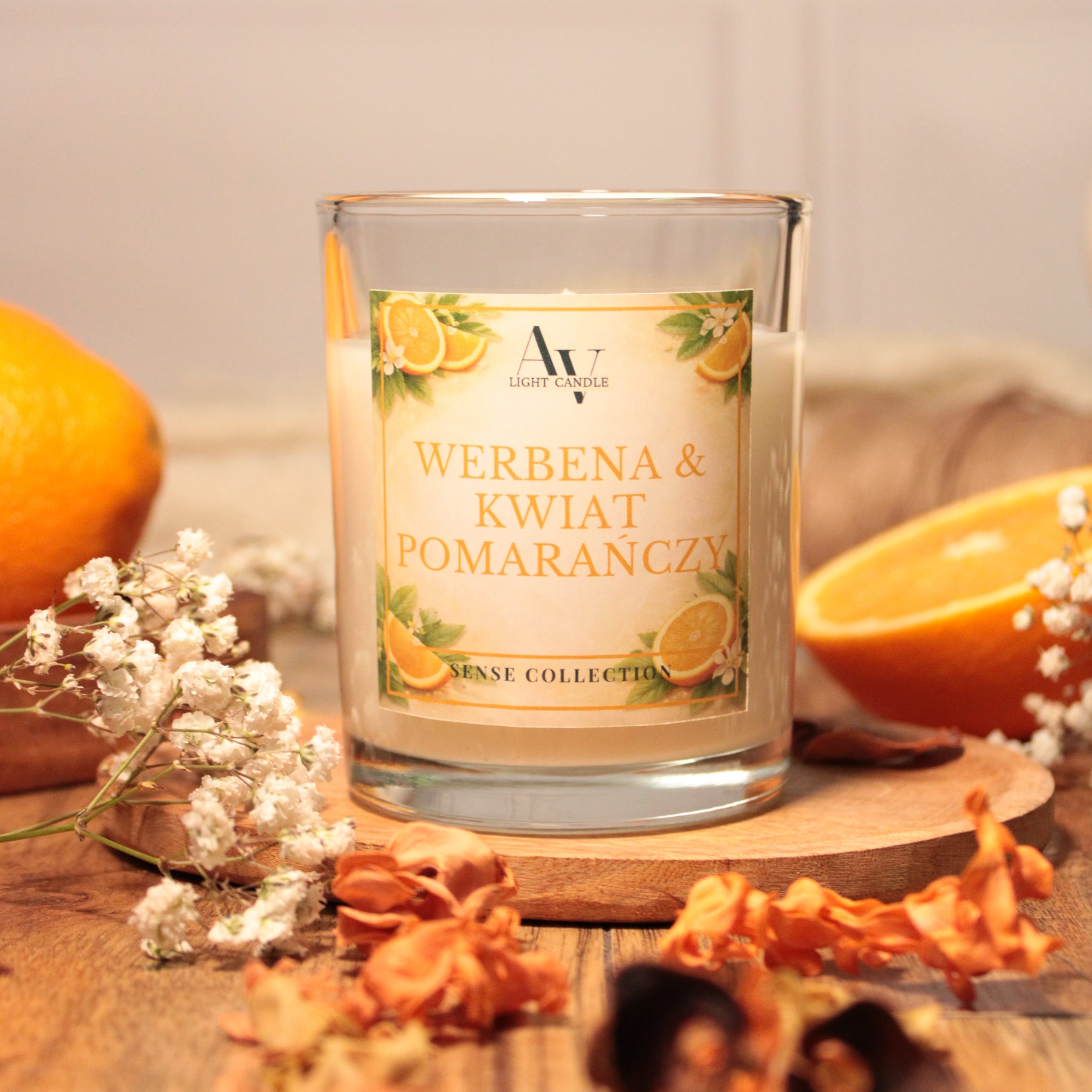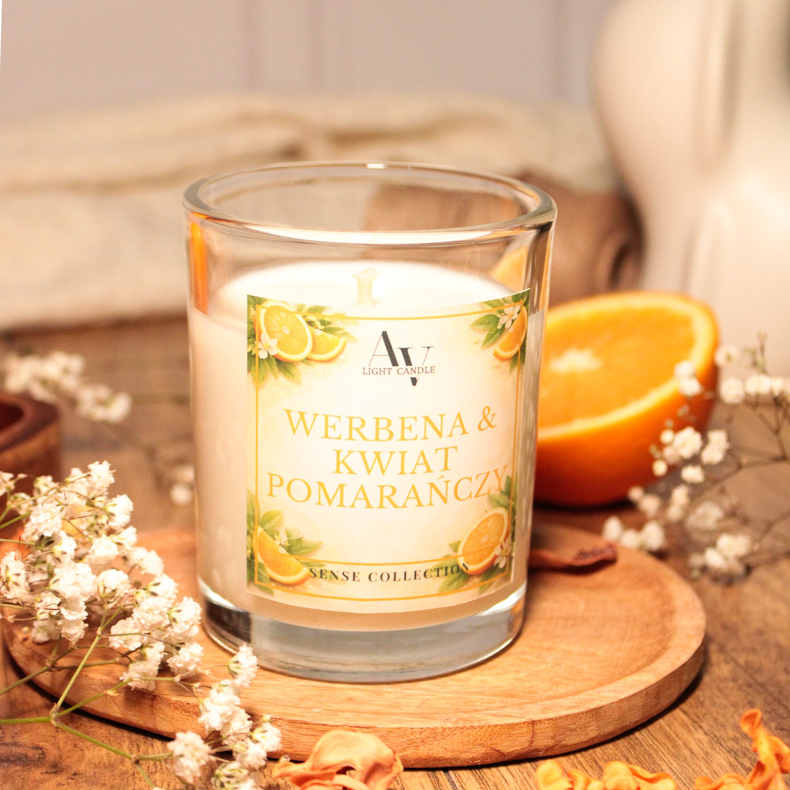 Strona główna / Produkty / Sense / Werbena & Kwiat Pomarańczy – Świeca Sojowa-200ml