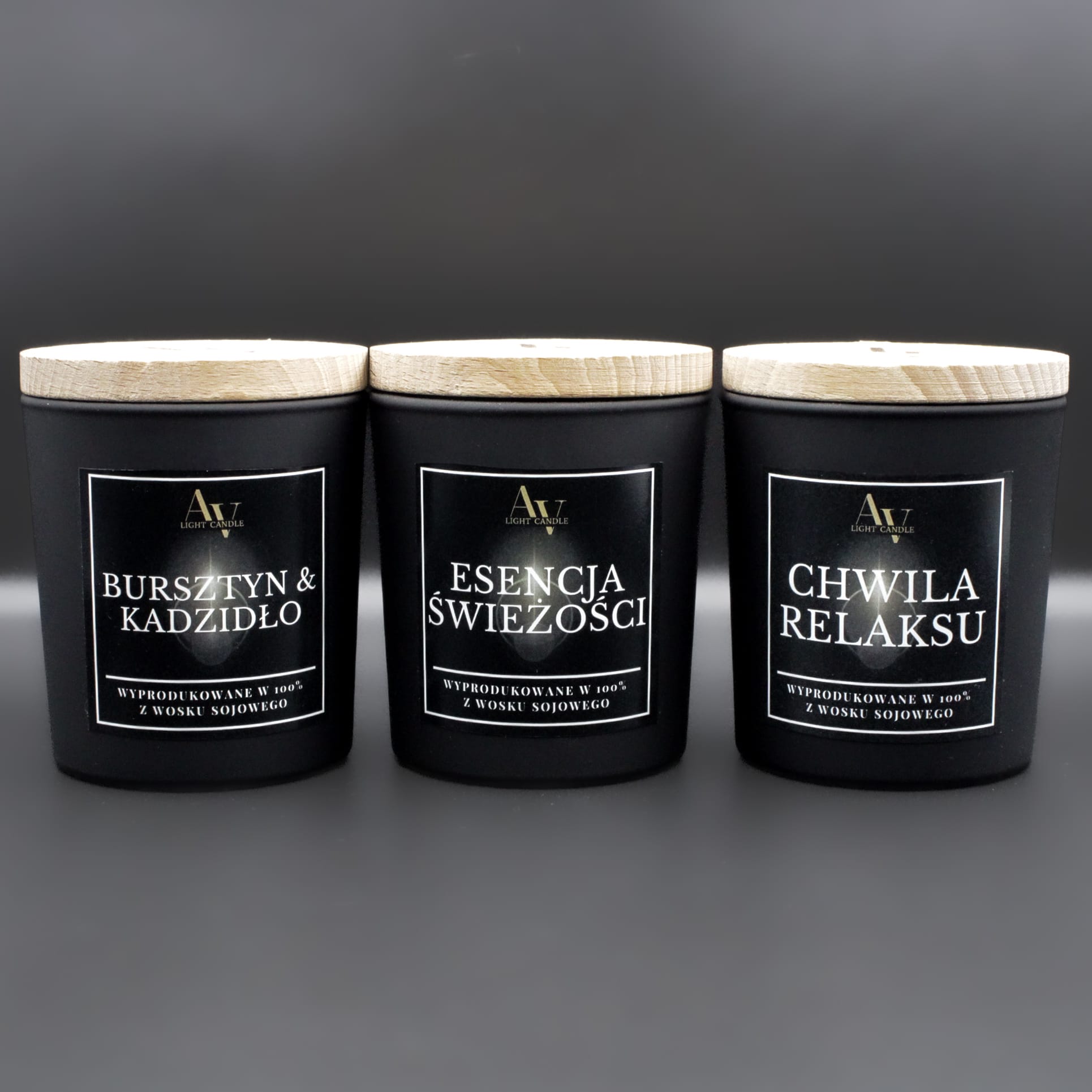 Odkryj wyjątkowy zestaw trzech świec sojowych 130 ml, które możesz dopasować do swoich potrzeb i nastroju. Każda świeca powstaje ręcznie z naturalnego wosku sojowego, bez dodatku parafiny i sztucznych barwników. Starannie dobrane olejki zapachowe posiadają certyfikat IFRA, co gwarantuje bezpieczeństwo i najwyższą jakość aromatu.